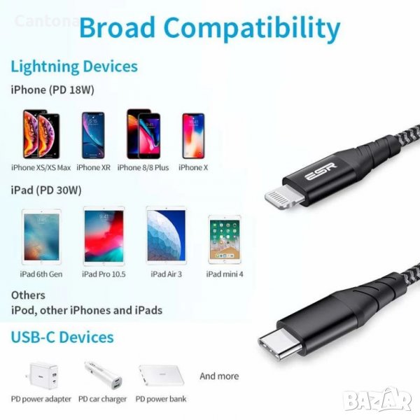 - Съвместимост: Този USB-C към Lightning iPhone кабел поддържа бързо зареждане за серия iPhone 14/13/12/11/X/8/7/6, iPhone SE 3/2, iPad Pro 12.9 (1-во и 2-ро поколение). ), iPad 8-мо поколение, iPad Pro 10.5; Необходим е 18W или по-висок USB-C PD адаптер