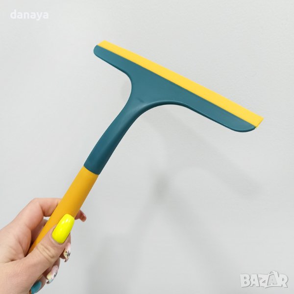 Стъклочистач с гумирана дръжка. Обира идеално водата от стъкла и други гладки повърхности като пластмаса и метал. Поради компактните си размери, тази стъклочистачка ще бъде много удобно средство за почистване на огледалото в банята. Така то няма да остава на капки и винаги ще блести. Чудесно приложение и при почистването на автомобилни стъкла.