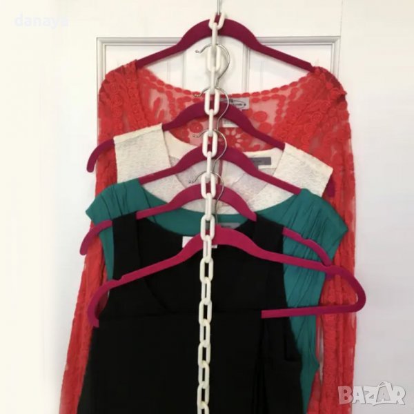 Пластмасов синджир, който служи за органайзер за гардероб. С него ще подредите максимално много закачалки в гардероба си. Вертикален органайзер, подходящ за спестяване на място, благодарение на възможността за закачване на много закачалки върху него. По този начин дрехите ще бъдат лесно достъпни и няма да се измачкват.