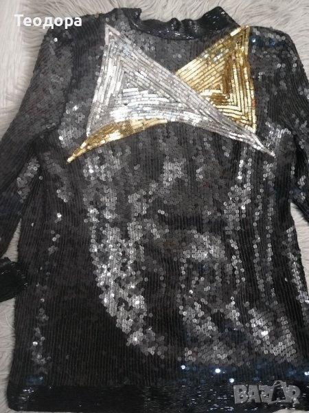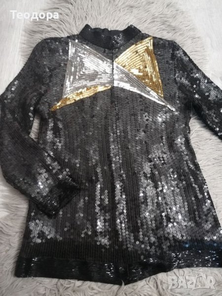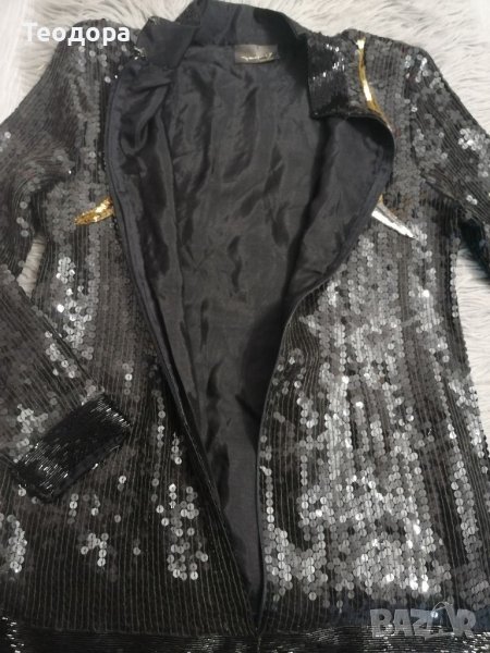 Яке, обшито с пайети и мъниста, М размер, много красиво! Гръдна обиколка 94 см /ханш 100/ дължина 64 см. Няма еластичност плата. Безупречно и разкошно!