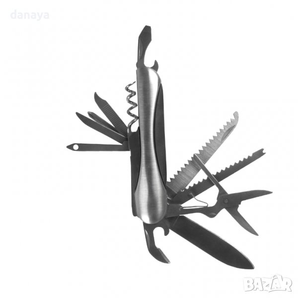 Многофункционален survivor аксесоар. Швейцарски джобен нож, 11 части. Мултифункционален туристически аксесоар с джобни размери. Перфектен подарък за хора, обичащи да прекарват свободното си време сред природата.
