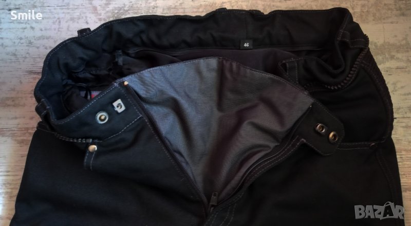 VANUCCI ® мъжки мото панталон. В отлично състояние черен цвят. Размер 46. Отлична изработка, издръжлива материя - водонепромокаема, дишаща. В кръста няма ластик. Протектори на колената . Крачолите в долната част са с цип от външната страна От вътре е с мрежеста материя.. Размери, измерени от мен: ширина в кръста - 37 см.; дължина - 104 см., дължина от чатала - 79 см., ширина крачол 22 см. Изпращам с "Еконт" или със "Спиди".