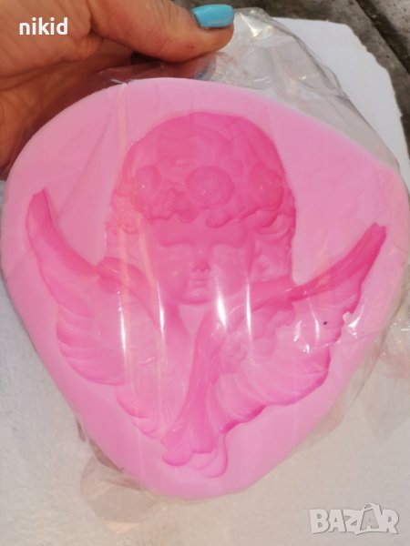 3D супер голям ангел глава лице момиче с венец и крила силиконов молд форма калъп гипс декор сапун → Обява 40132968