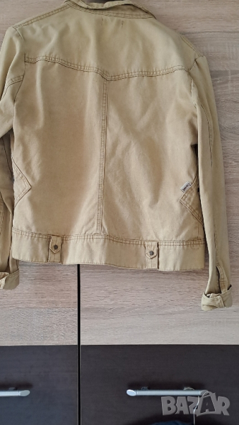 Продавам дамско дънково яке 100% памук може да се носи на дънки и на пола късо актуално за пролетта размера е М! Обиколка на талията и гръдна обиколка е 96см пере се на 46 градуса глади се и е !!! Цвят бледо жълт!
