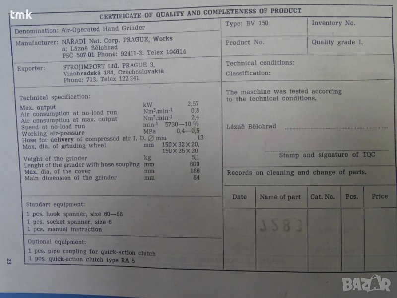 Предлагаме нов оригинален чешки, ръчен пневматичен прав шлайф за индустриално приложение, производство на NAREX.