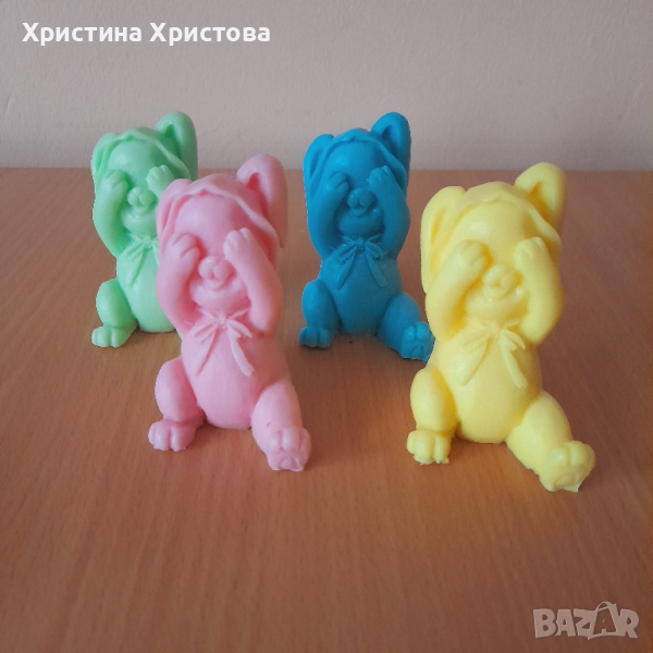 Сладки сапунчета зайчета, цветни, ароматни, изработени от глицерин.