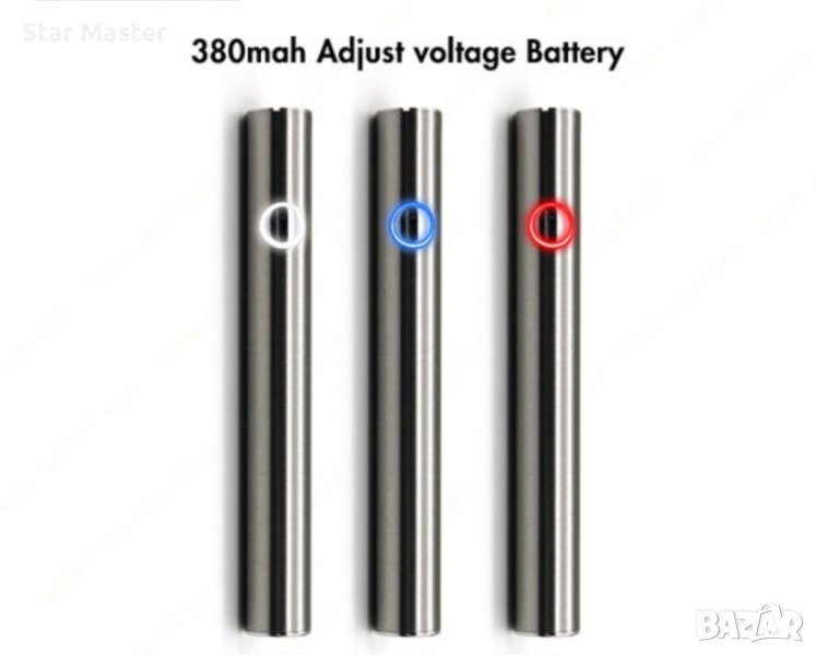 Презареждаща се батерия 2.7– 4V, 380mAh, резба тип 510, с Micro USB порт за зареждане. Елегантен, компактен дизайн и различни функции управляващи се с едно копче.