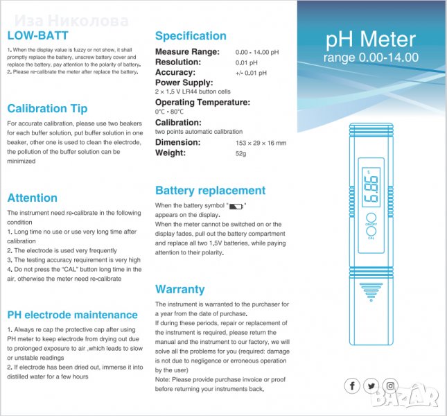 Цифров тестер с висока точност измерва от 0.01 в диапазона на 0-14 PH за вода, храна, аквариум, плувен басейн, хидропоника, инструмент за измерване на киселинността