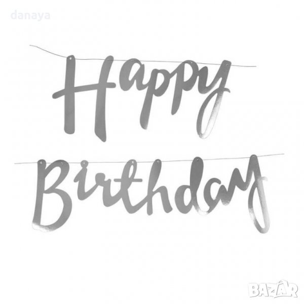 Украса за рожден ден в сребрист или златист цвят. Парти банер надпис Happy Birthday. Изработен от тънък картон в сребрист или златист цвят. Думите са отделни, така, че можеш да ги подредиш на един ред или една под друга. В комплектът е включена лента за свързване на буквите.