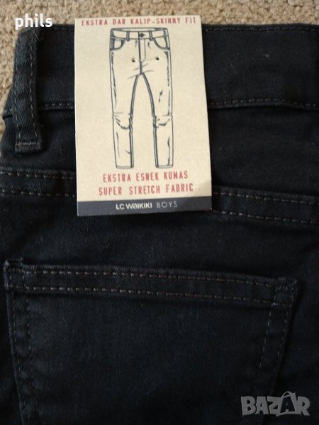 Нови черни памучни дънки за момче на възраст 3- 4 години. Марка LC Waikiki. Подходящи за сезон пролет, ранно лято. Дължина 61 см.по вътрешния ръб 41 см.
