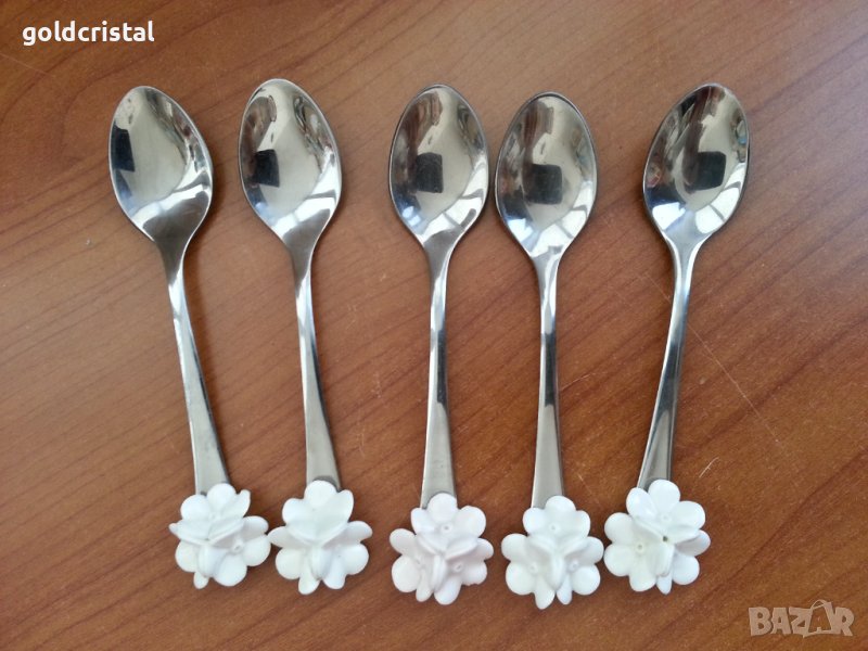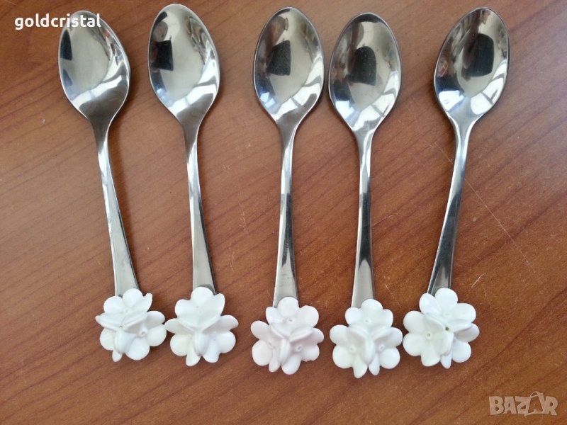 Лъжички за кафе с порцелан 1бр-10лв две с леки забележки по цветчета 1бр-5лв за чай 1бр-15лв коктейлни 1бр-18лв сервиз комплект сет лот ретро арт декор винтидж колекция старинни антикварни предмети обзавеждане за дома и семейството подходящи за подарък за ценители и колекционери
