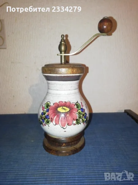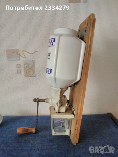 Стари кафемелачка,,GARANTI" GESCHMIEOETES WERK" порцелан и мелачка от 50-те години.
