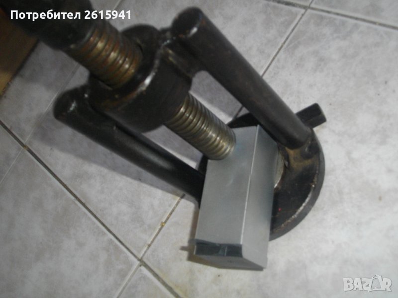 ОПИСАНИЕ на скоба за лагери - инструмента от старото качество. Запазен вид и отлично техническо/работно състояние. Размер 45-130 мм, дължина на захвата - 100 мм, височина на скобата - 29 см. Върток - масивен дължина -30 см дръжка. Тегло на скобота - 2,000 кг.