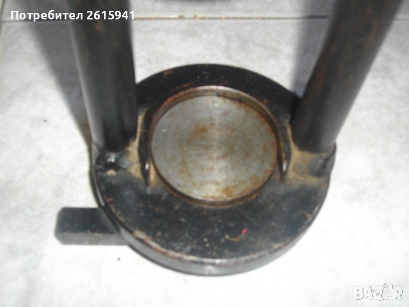 ОПИСАНИЕ на вертикална стяга - тип вилка. Масивна, от старото качество от преди години. Цялостна височина в отворено състояние - 38 см. Стягата е тип менгеме, като могат да се поставят предмети за захват с височина до 11 см. Долната основа на стойката е с отвор с диаметър ф 60 мм с отвор ф 45 мм за обработка на предмети от долна страна. Основата е и с алуминиева капачка ф 60 мм, която може да се ползва и като наковалня. Тръбата за върток на резбовият винт е с диаметър ф 30 мм.Запазен външен вид на стягата/стойка и отлично техническо/работно състояние. Тегло на стойката/стяга - 4,000 кг. Стойката е масивна и стабилна, стой самостоятлно здраво и устойчиво.