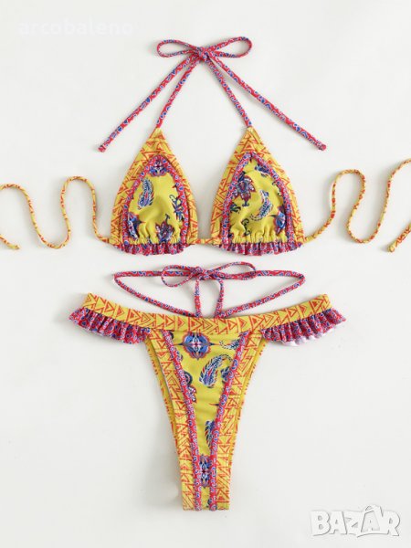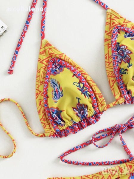 Дамски бански костюм с етнически принт и връзки, 4цвята