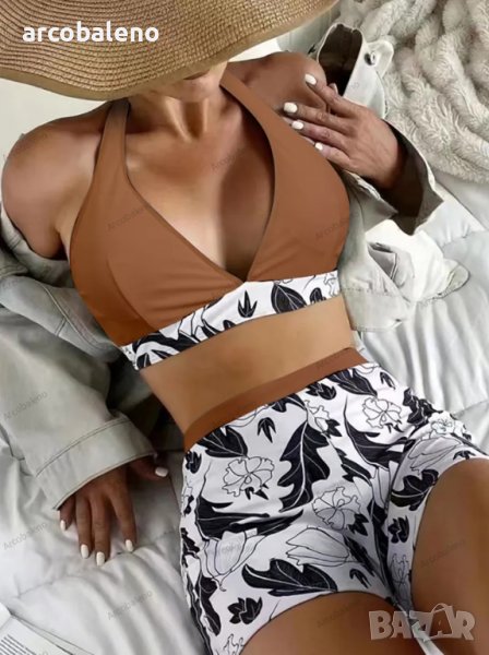 Дамски бански костюм къси панталони с висока талия, 5цвята