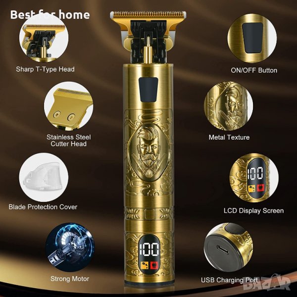 【Super Sharp T-Blade】: Професионалната машинка за подстригване е оборудвана с прецизно внесено острие от неръждаема стомана, което е водоустойчиво и лесно се разглобява. Т-образните остриета са гладки и остри, лесни за оформяне и оформяне на ръбове. Дизайн с R-образен скосен ръб Може да докосне кожата нежно, без да я наранява, и може да се подстриже безопасно и бързо.. Забележка: Моля, нанесете масло за коса преди употреба (този продукт не съдържа масло за коса)
