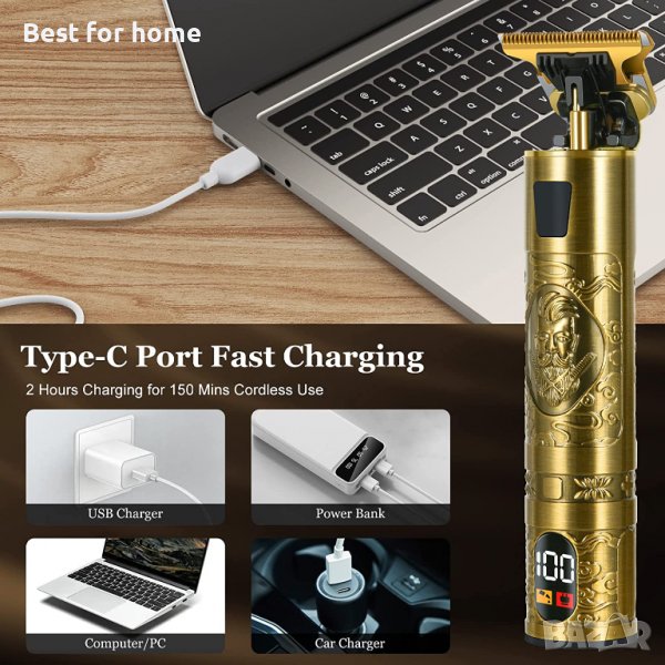 【USB бързо зареждане и високоефективен дизайн】USB Type-C дизайн за зареждане, вградена мощна 1400MAH литиева батерия, времето за използване е 150 минути, 2 часа за пълно зареждане, основа за машинка за подстригване с порт за зареждане. USB зареждане. Удобно зареждане: Можете да използвате лаптопи, захранващи банки и други устройства, захранвани от USB. Моторът с висока мощност предлага ефективност на работа с висока скорост, без да се притеснявате за недостатъчна мощност.