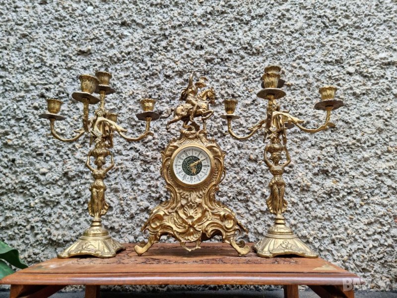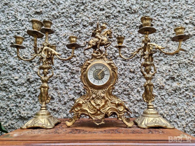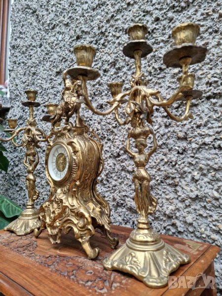 Антикварен Бронзов Часовник и Свещници "1960г"
