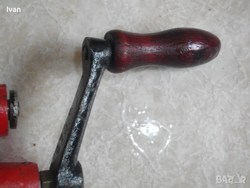Дръжка - стамана с дървено покрите с тъчночервена лакова боя, която не е нарушена.