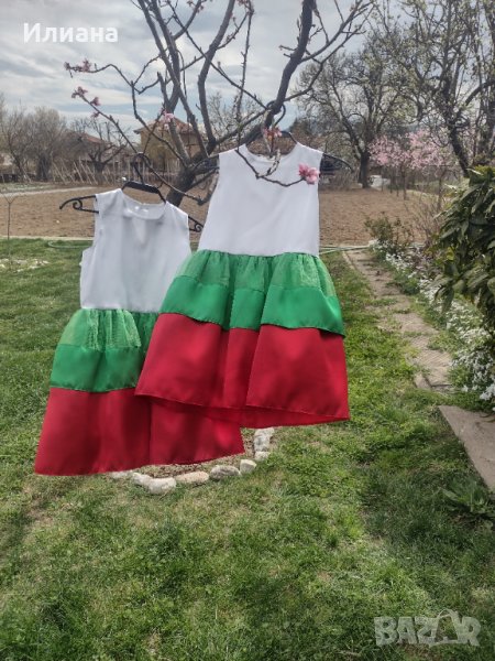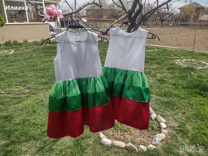 Рокля трикольор от 98 до 152 по ваше желание може и други цветове също така може и бяла тениска или боди с пола.