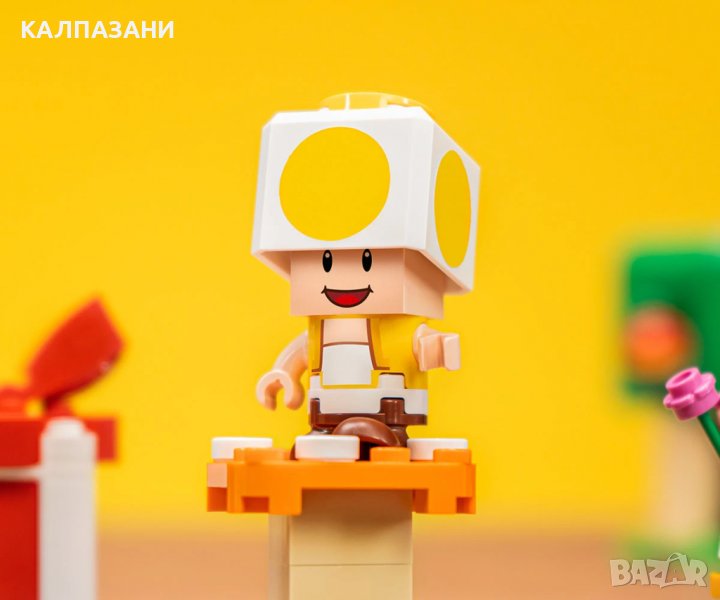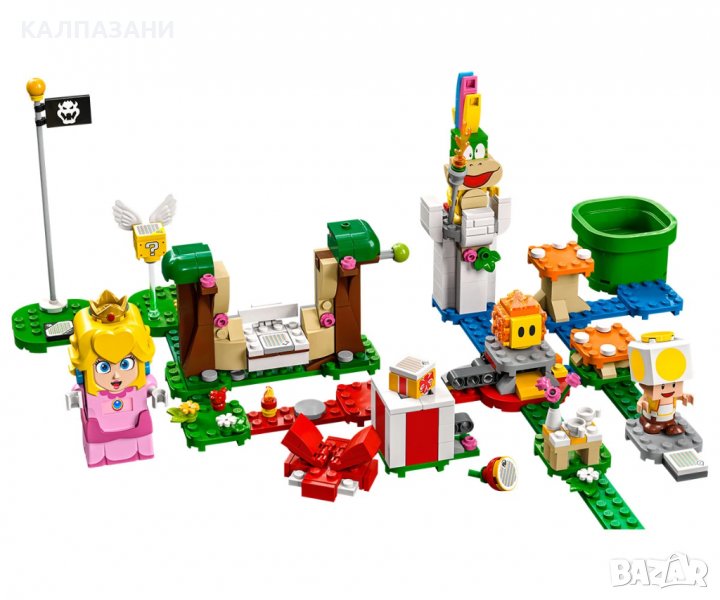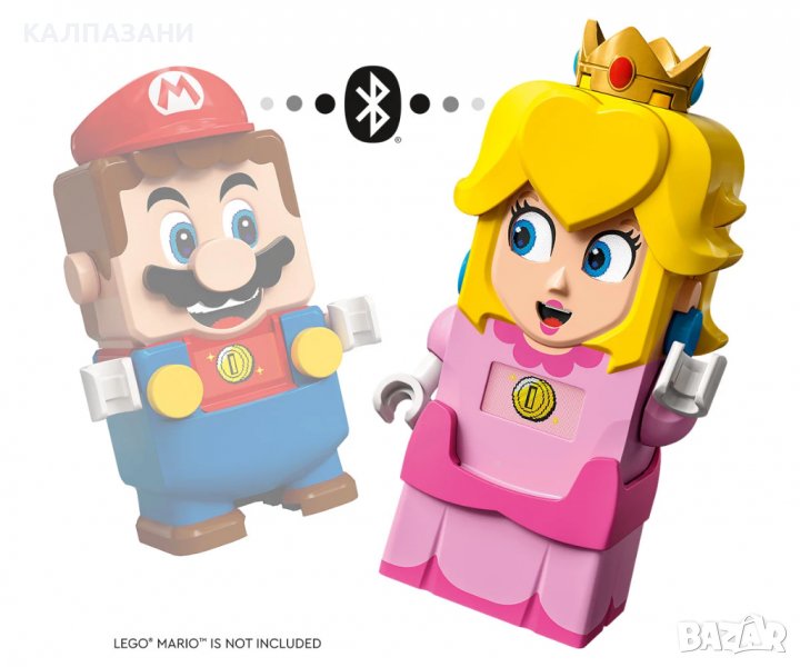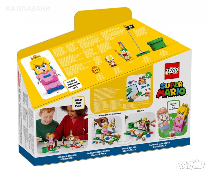 Запознайте децата с интерактивната вселена на LEGO® Super Mario™ с този комплект „Приключения с Peach – начална писта (71403)“. Той включва фигура на LEGO® Peach™, която дава незабавни отговори чрез LCD екран и високоговорител. Фигурата на LEGO Peach може да бъде свързана с LEGO® Mario™ или LEGO® Luigi™ (допълнителните фигури не са включени) чрез Bluetooth, за да спечелите бонус монети за отборна работа. Плодово забавление Забавлявайте се с предизвикателства за даване на подаръци и изстрелване на топката лава, за да съборите Lemmy от кула. Печелете цифрови монети за това, че помагате на LEGO Peach да се люлее на люлката и за взаимодействия с Yellow Toad. Летящото блокче с ? също предлага награди. Червеният плод в този комплект за игра може да бъде „изяден“ от LEGO Peach, предизвиквайки щастливи реакции и спечелване на допълнителни монети. Той също така може да бъде подарен на Yellow Toad или друга интерактивна фигура (не е включена). Намерете стъпки за построяване в приложението LEGO Super Mario. Неограничено творчество Колекционерските начални писти и комплектите с допълнения LEGO Super Mario позволяват на децата да разширяват, да променят конструкцията и да създават уникални нива.