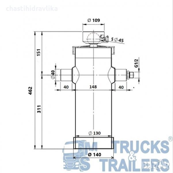 За монтирането на този Хидравличен цилиндър са необходими допълнителни елементи, които се заплащат отделно.