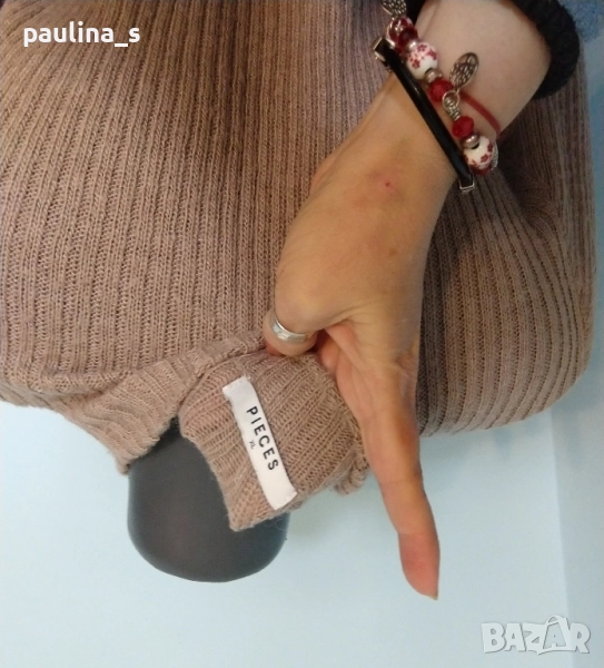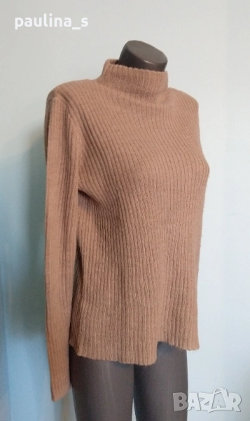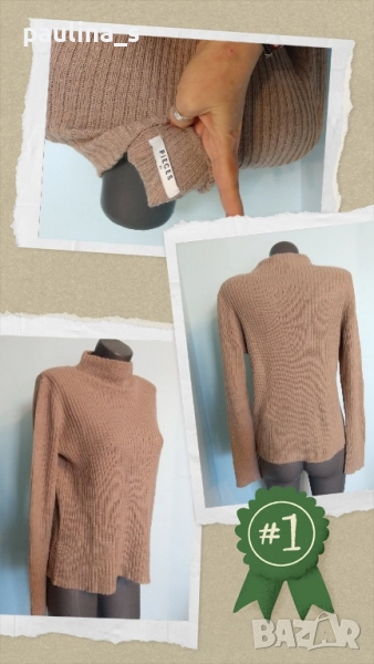2️⃣. Колаж / XL / 3XL - "Pieces". Цената е крайна 29,99лв / 15 евро. Мекичък еластичен пуловер с полуполо яка. Преждата е пухкава, мека, плетивото е рехаво и дава еластичност до 4ХЛ, акрил, мохер и полиестер. Цветът е неутрален, телесен - Нюд. Моделът е обран и леко втален, съобразено с размера. Без дефекти - скъсано или други подобни.