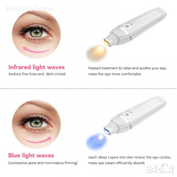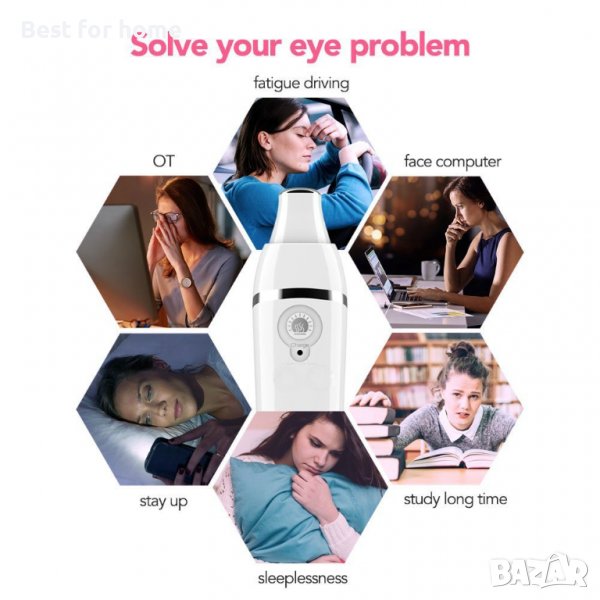 МАСАЖОР ЗА ГРИЖА ЗА ОЧИТЕ --- Масажирайте и отпуснете очните мускули. Помага за намаляване на бръчките, фините линии, облекчава тъмните кръгове, болката в очите и подуването около очите. Подобрете притока на кръв. Отпуснете се и ви помогне да спите по-добре.