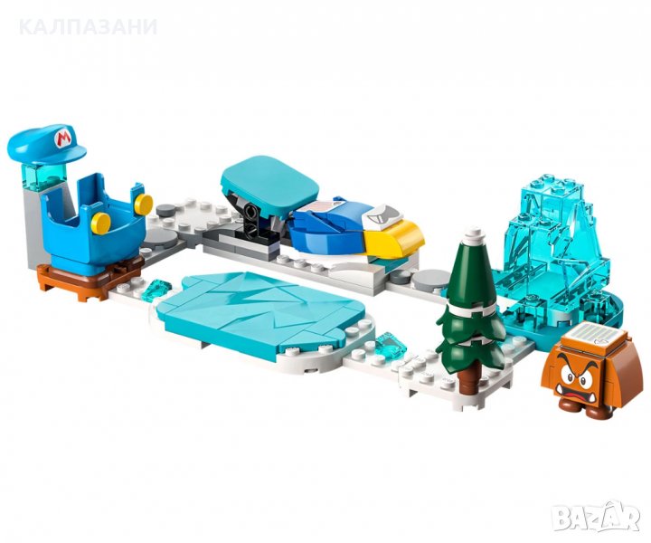Забавление с изстрелване на Cooligan и разбиване на лед – децата могат да създават забавни ледени нива с (71415) LEGO® Super Mario™ Комплект с допълнения Ice Mario Suit and Frozen World;