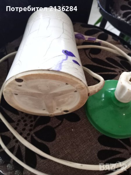 Стара кафемелачка,външно е напукана пластмасата и има следи от флумастер,няма счупено,липсва копчето.Въпреки неугледния вид работи перфектно.