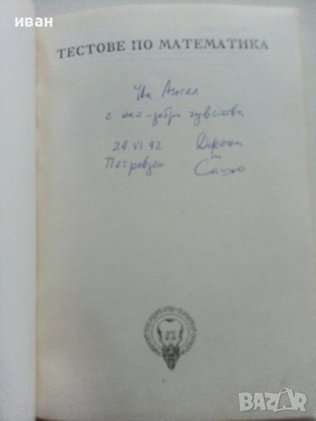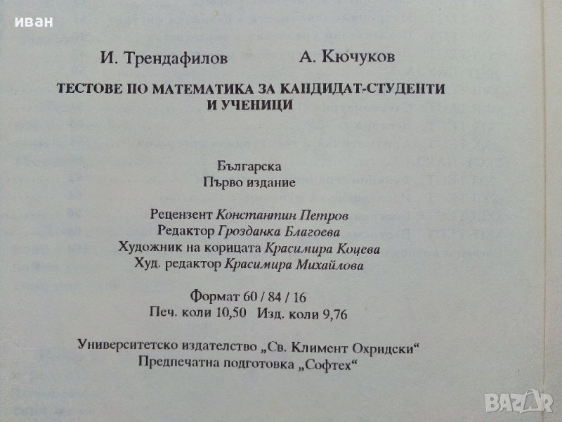 Тестове по Математика за кандидат-студенти и ученици - И.Трендафилов,А.Кючуков - 1992г. → Обява 40158096