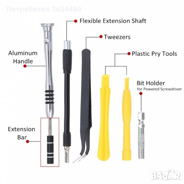 Петзвездна отвертка: 2*P2 [☆0.8 】 2*P5【☆1.2】 P6【☆1.5】 P8【☆2.0】