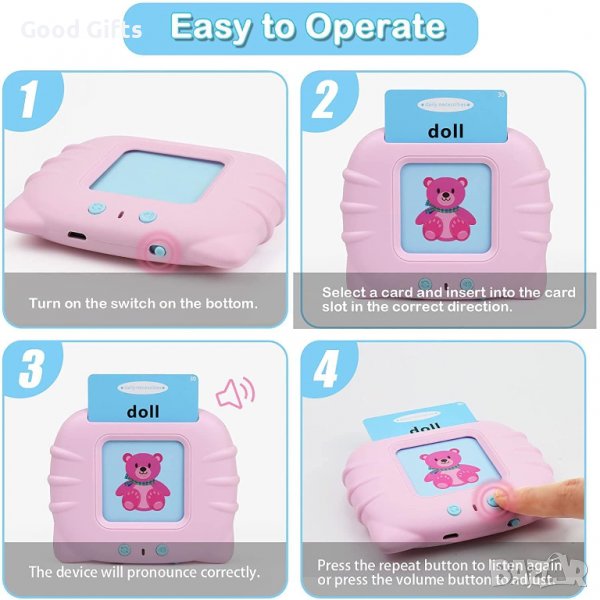 - Страхотен подарък за деца-Идеален вариант за учебни пособия/игра в класна стая/предучилищна възраст/, домашно обучение. Детските флаш карти поддържат USB зареждане, функция за автоматично изключване, регулируема сила на звука.