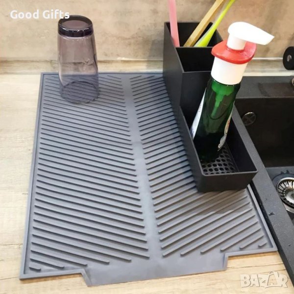 Иновативна кухненска подложка за бързо сушене на съдове. Тя е лека, лесна за почистване, устойчива на топлина, компактна и изработена от нетоксичен силикон