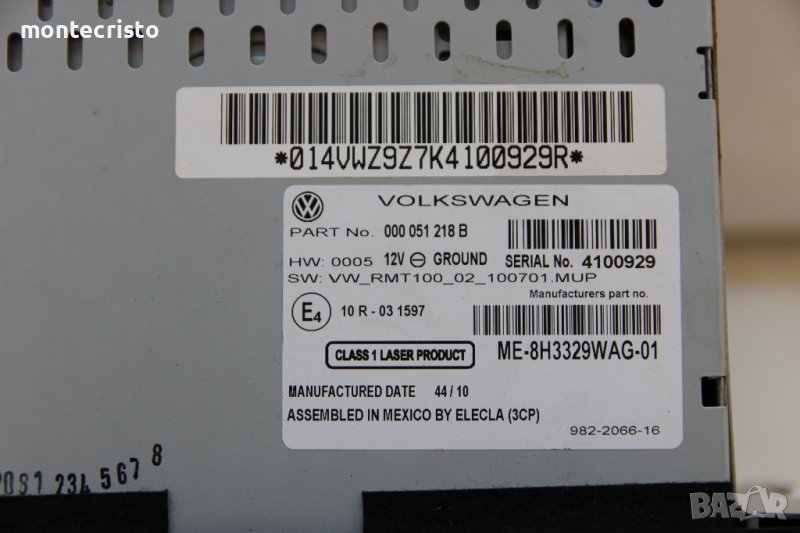CD USB MP3 BLUETOOTH AUX VW POLO V 6R1 6C1 (2009-2017г.) 000051218B / 000 051 218 B / касетофон → Обява 40160228