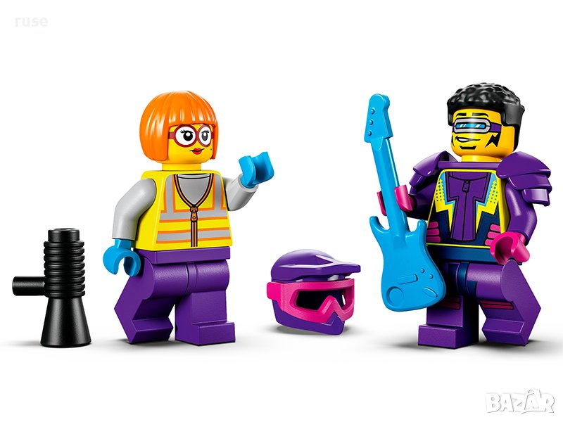 Очакват ви забавни състезания с този комплект LEGO® City Stuntz, включващ мотоциклет за каскади с маховик и 2 минифигури, включително Шърли Кийпър от телевизионния сериал LEGO City.