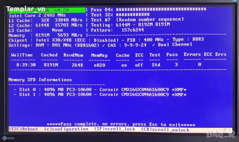 3) Corsair XMS3 2x2 GB DDR3 1333 at 1600 // ver 8.15