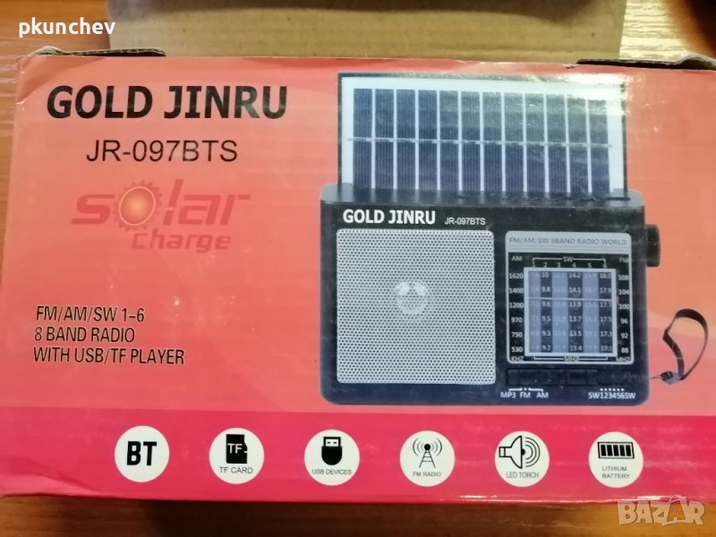 Радиоприемник FM/AM, Bluetooth, SD card, USB, фенер, соларно зареждане → Обява 40161715