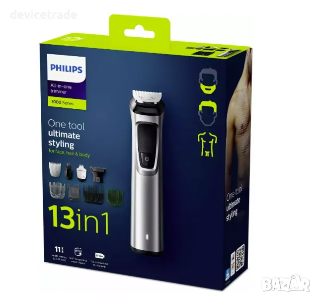 Върховен стил и прецизност Ус ъвършенствайте личния си стил с новия най-прецизен и многофункционален тример. 13 първокласни инструмента ви дават възможност да изработите своя уникален стил от главата до петите. Насладете се на максимална прецизност с остриета DualCut и допълнителен контрол с неплъзгаща се гумена дръжка.