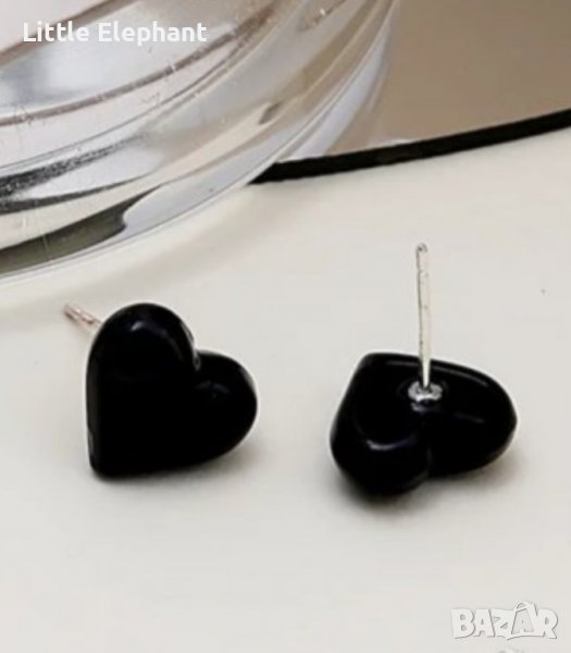 Сребърни обеци сърца,plein,black,колекция"Hearts"/нови → Обява 40161954
