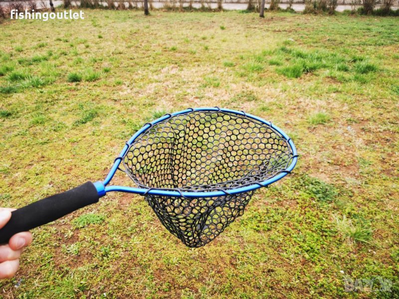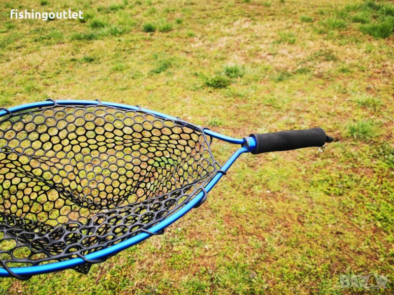 Главата на кепа е лека алуминиева а мрежата е гумена с едра оплетка, което улеснява загребването и предотвъртява досадното закачване на куките и на мерките на рибите.