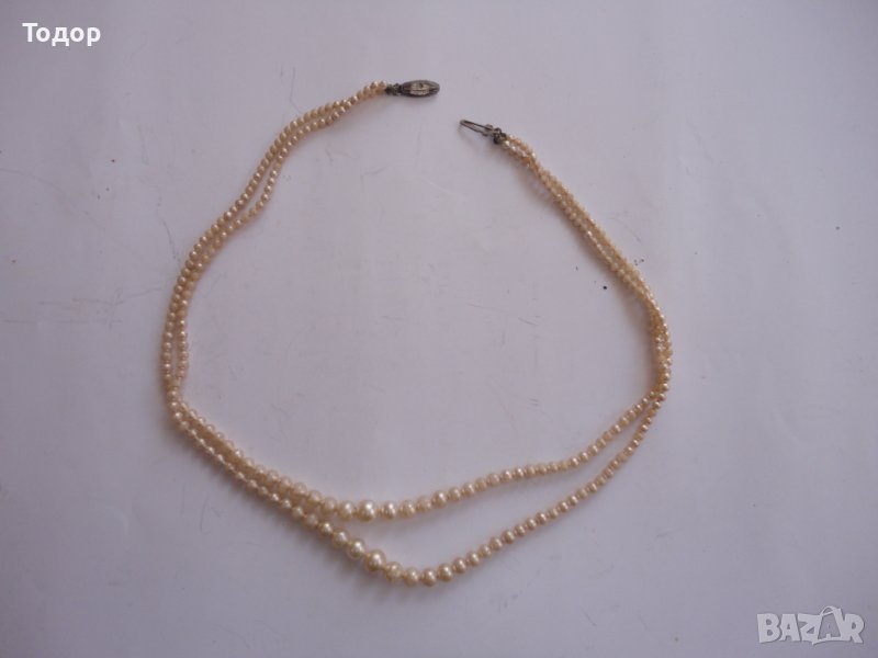 Два реда перли като най малката е с диаметър 3 мм а най голямата 8 мм Налична маркировка на закопчалката 835 Здраво Отлично състояние