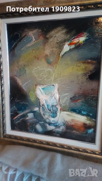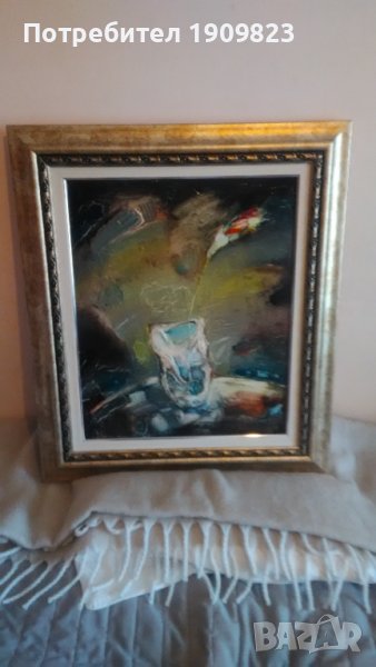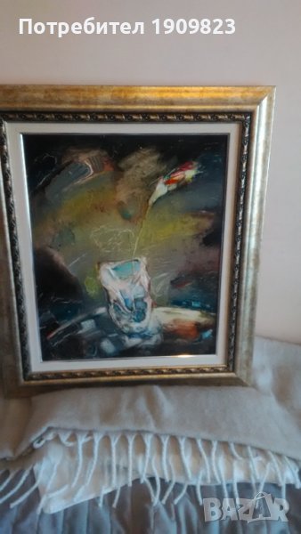 Масло върху фазер с нова луксозна рамка. Изпращам и оригиналната авторска рамка. Размер с рамката 74*64см