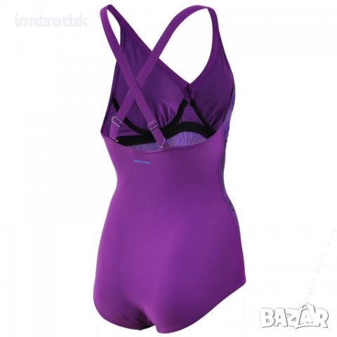 костюма е в наситен лилав цвят има широки ремъци, които се пресичат на гърба и се придържат перфектно към тялото. Гарантира перфектен външен вид, който заслужавате като никой друг. Материал: 73% найлон, 27% еластанРазмер 32 C ,отговаря на S за 164 см. височина