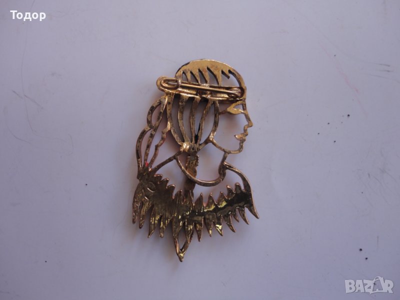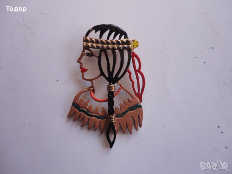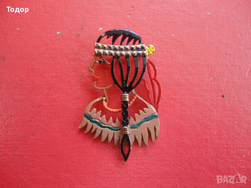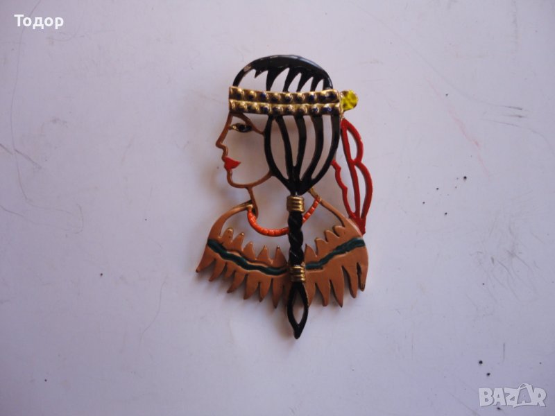 Страхотна позлатена брошка с емайл индианка маркирана → Обява 40165245