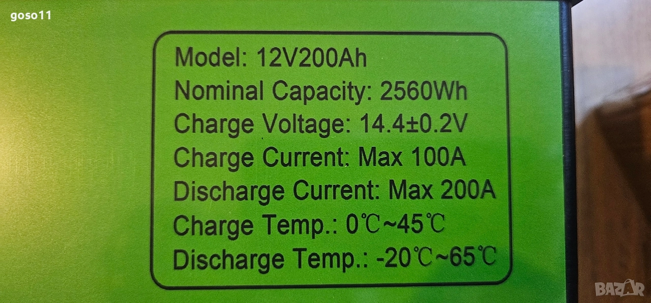 Вграден BMS: 100Ah ,Максимален ток на зареждане: 100Ah - 50A ;