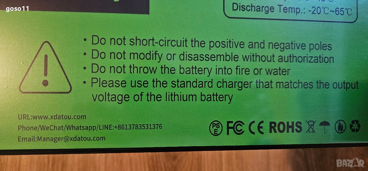 Защитена температура на батерията: 60°C плюс 5°C