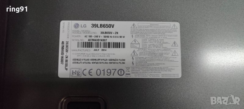 Захранване - EAX65423701 (2.0) TV LG 39LB650V → Обява 40168154