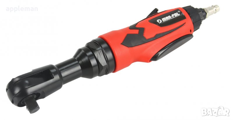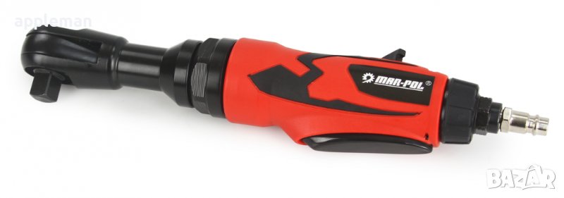 Пневматична тресчотка 1/2" MarPol е идеална за работа в автосервизи и производствени процеси. Тя е предназначена за монтиране и демонтиране на резбови съединения и компоненти като гайки и болтове. Притежава ъглова глава, която е свързана към лек алуминиев корпус. Тресчотката се захранва от поток от сгъстен въздух под налягане.